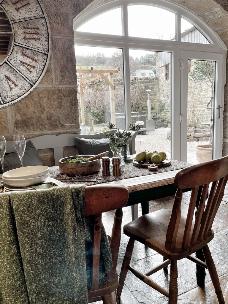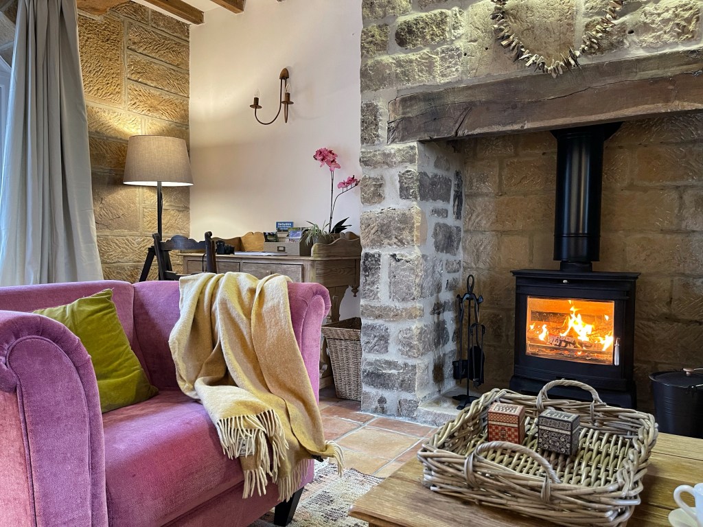 The entrance is through the striking arched windows, straight into the kitchen/diner and is a fantastic space to rustle up a delicious meal . Come together around the kitchen island or the farmhouse dining table.. it really is a fabulous social space! The kitchen offers a range cooker with a gas hob, fridge/freezer, dishwasher, Nespresso machine and microwave. There is a handy utility room with a washing machine and tumble dryer and downstairs WC. The cosy living room has a wood-burner , there are an assortment of board games and books as well as a Smart TV.